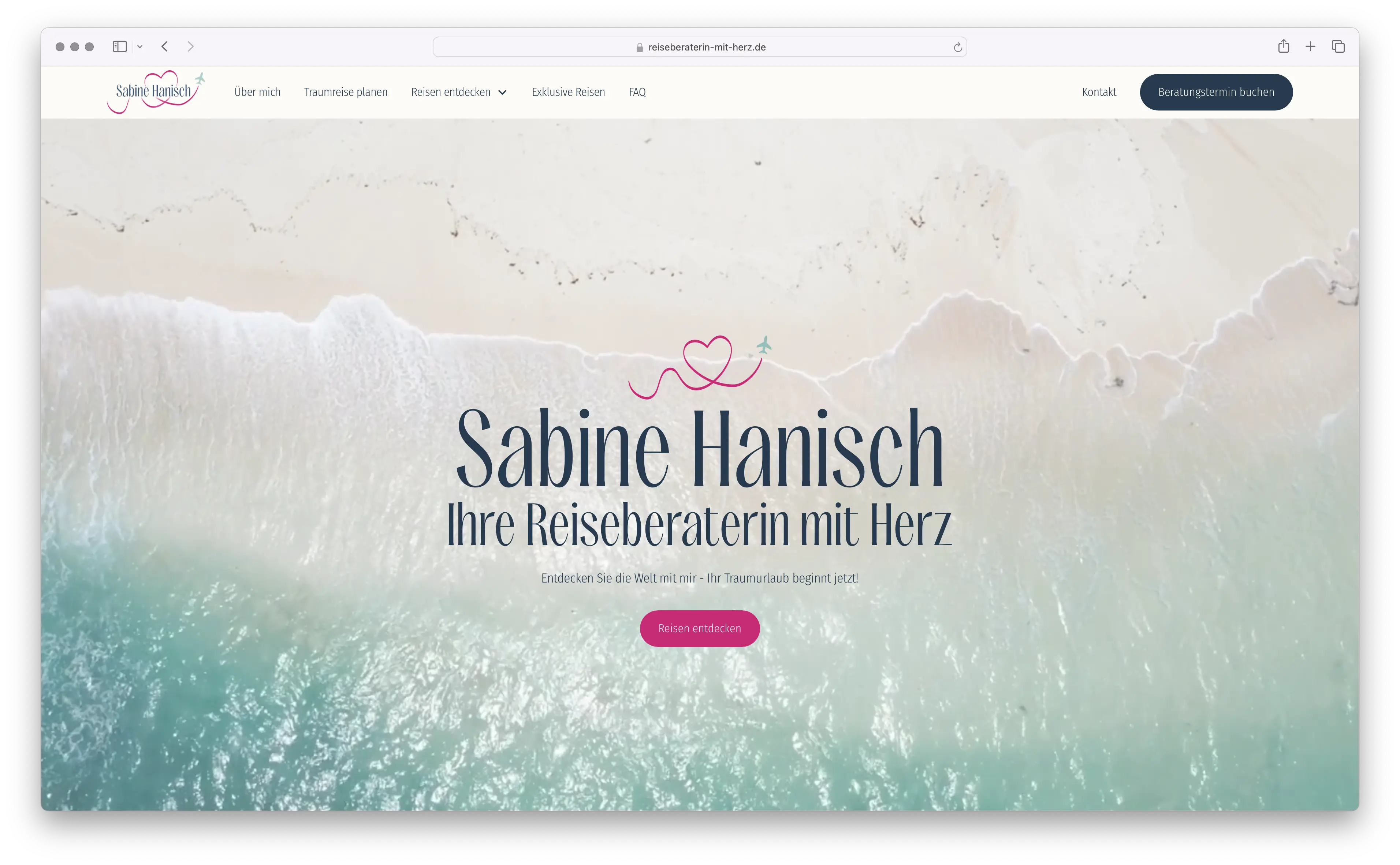 Sabine ist mit einer klaren Vision gestartet: Reiseberatung, die wirklich persönlich ist. Mein Job war es, dieser Vision ein Gesicht zu geben. Da wir auf der grünen Wiese gestartet sind, durfte ich das volle Programm fahren – vom Logo-Design über die Farbwelt bis hin zur fertigen Website. Der Name „Reiseberaterin mit Herz“ war dabei Programm: Wir wollten weg vom sterilen Reisebüro-Look, hin zu einer Brand, die Vertrauen schafft und Lust auf das nächste Abenteuer macht.